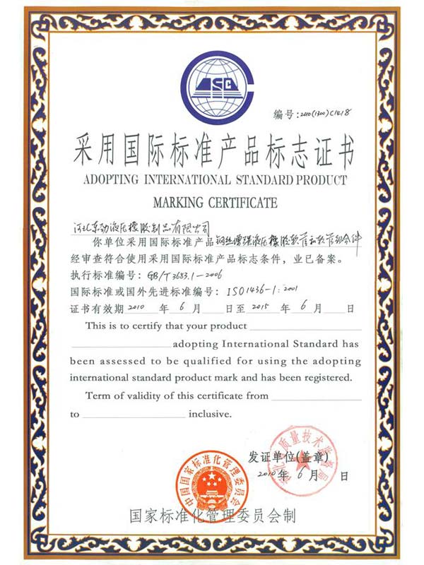 • 鋼編管國際標(biāo)準(zhǔn)產(chǎn)品標(biāo)志證書